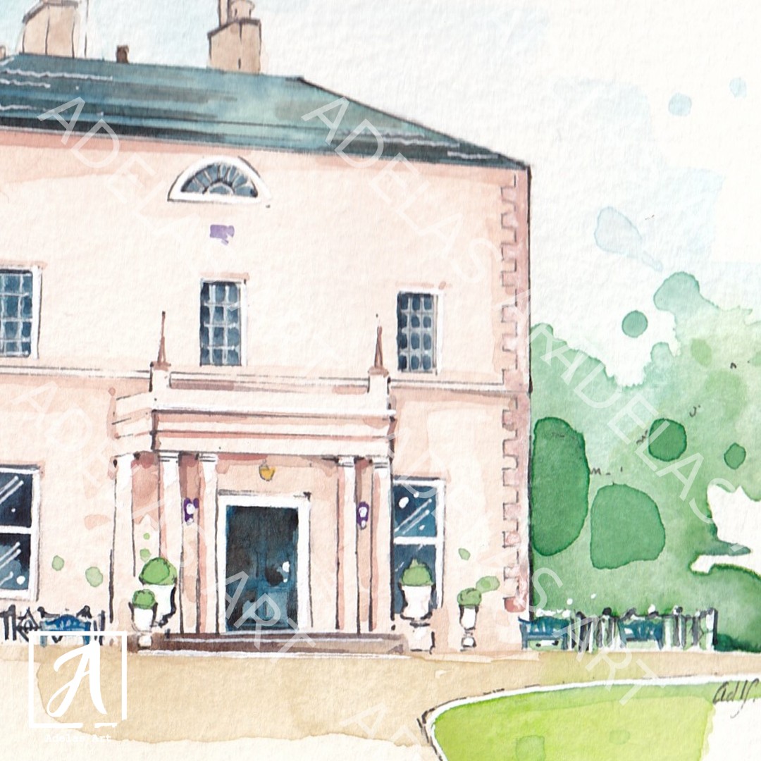 A vibrant art print of Boyne Hill House, in Ireland. This is a fine art print of an original watercolour painting by Adelas Art.